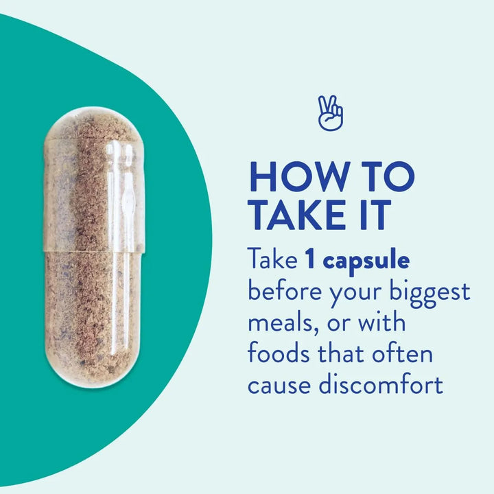 - Tomar 1 cápsula con un vaso de agua 10-15 minutos antes de tu comida principal