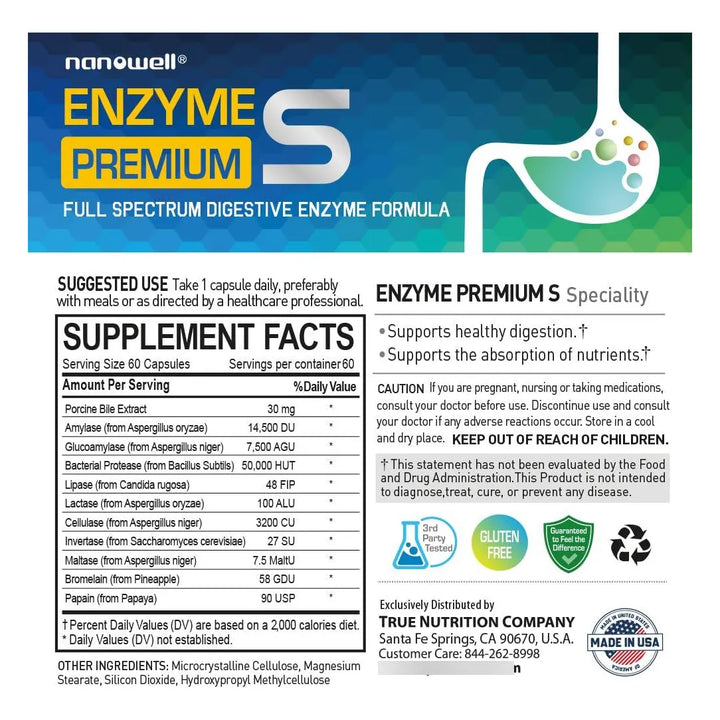 ¿Sientes pesadez después de comer? ¿Problemas para digerir ciertos alimentos? Enzyme Premium S es la solución definitiva para una digestión óptima. Este suplemento multienzimático de alta calidad está diseñado para descomponer eficientemente carbohidratos, proteínas y grasas, ayudándote a absorber mejor los nutrientes y a sentirte ligero después de cada comida.
