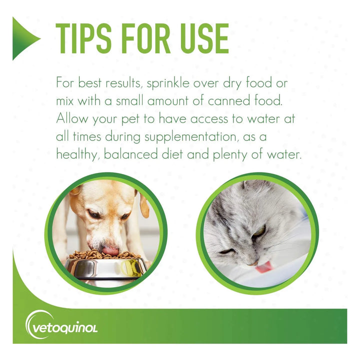 - Fácil de administrar, mezclándose perfectamente con la comida de tu mascota 🥄