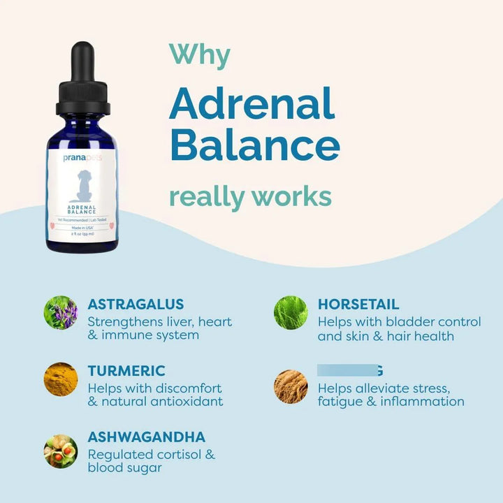 Equilibrio Suprarrenal Natural actúa restaurando el eje HPA (hipotálamo-hipófisis-suprarrenal) que está desbalanceado en perros con Cushing. Su fórmula única de hierbas tónicas ayuda a: