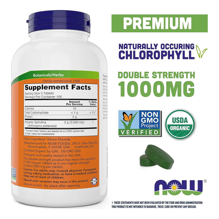 - Doble Fuerza: 1000 mg de pura espirulina por comprimido, el doble que otras marcas. 💪