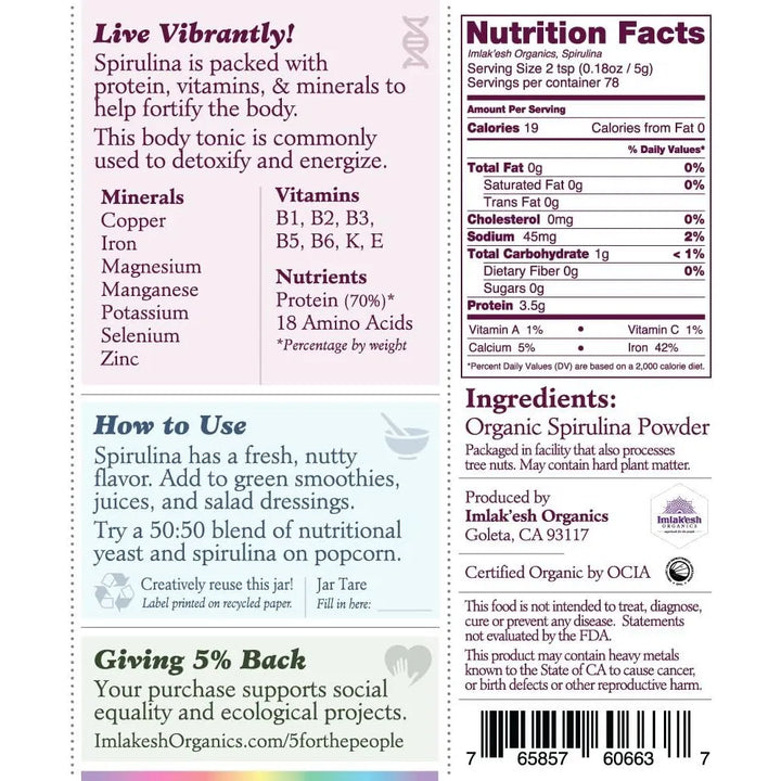 ¿Te sientes cansado, sin energía o buscando una forma natural de fortalecer tu sistema inmunológico? Imagina un alimento que no solo nutre tu cuerpo, sino que también lo desintoxica, reduce la inflamación y te da ese impulso vital que necesitas cada día. La Espirulina Pura en Polvo es ese aliado que tu salud estaba esperando. Cultivada en las prístinas aguas del norte de Chile y certificada como orgánica, esta alga verde-azulada es un tesoro nutricional que la naturaleza nos brinda.