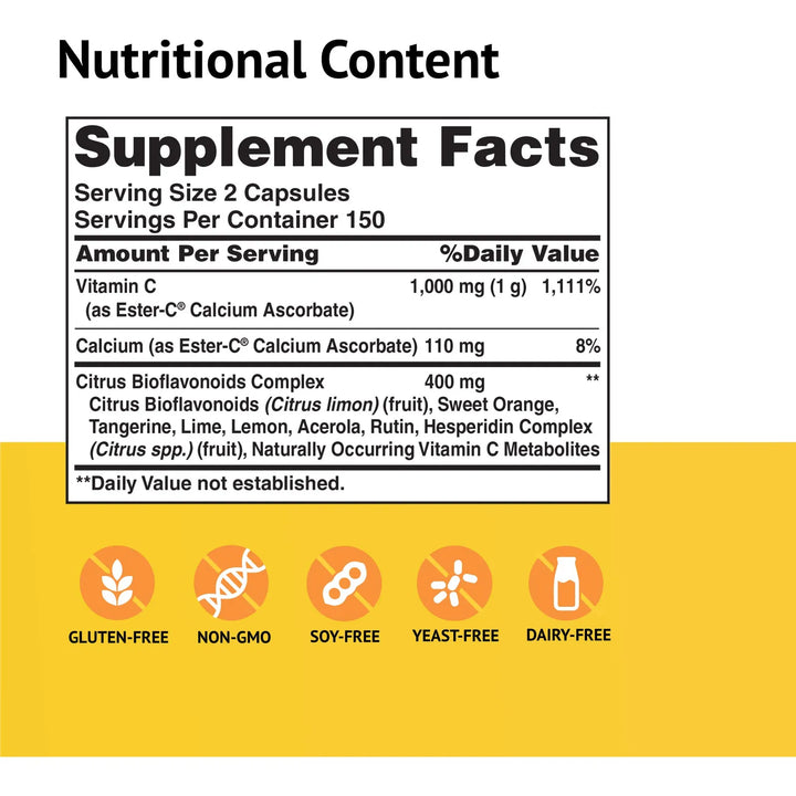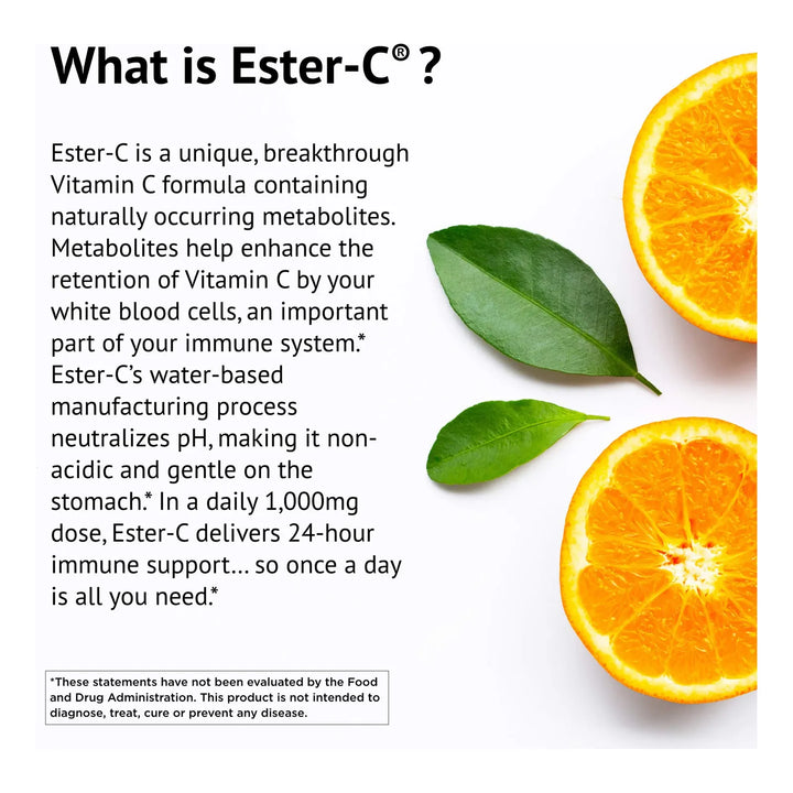 ¿Sientes que tu sistema inmunológico necesita un refuerzo, pero las vitaminas tradicionales te causan molestias? Descubre la solución definitiva con Ester-C, la vitamina C no ácida diseñada para ofrecerte apoyo inmunológico las 24 horas sin irritar tu estómago. Imagina despertar cada día con energía, sintiéndote protegido contra los resfriados y el estrés oxidativo que acelera el envejecimiento. Esto es posible gracias a una fórmula única que combina 500 mg de vitamina C con bioflavonoides cítricos para una absorción óptima.