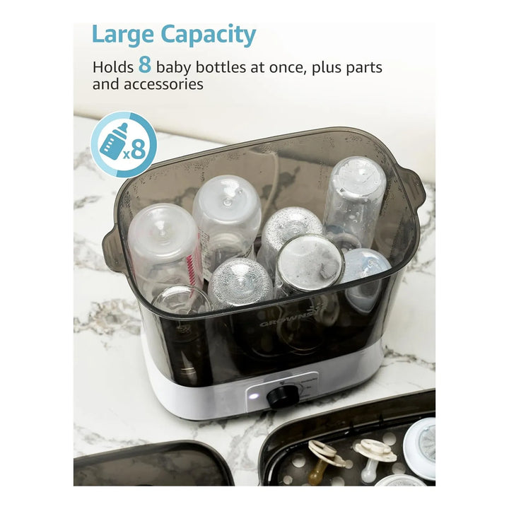 ¿Sabías que los biberones pueden albergar bacterias peligrosas si no se esterilizan correctamente? Con el esterilizador GROWNSY, ese miedo desaparece. Su tecnología de vapor a 360° elimina el 99.9% de los gérmenes, dándote la tranquilidad de que cada biberón, chupete o accesorio está completamente limpio y seguro para tu bebé. Además, su capacidad para 8 biberones altos y su diseño compacto lo convierten en el compañero perfecto para tu cocina, sin ocupar espacio innecesario.