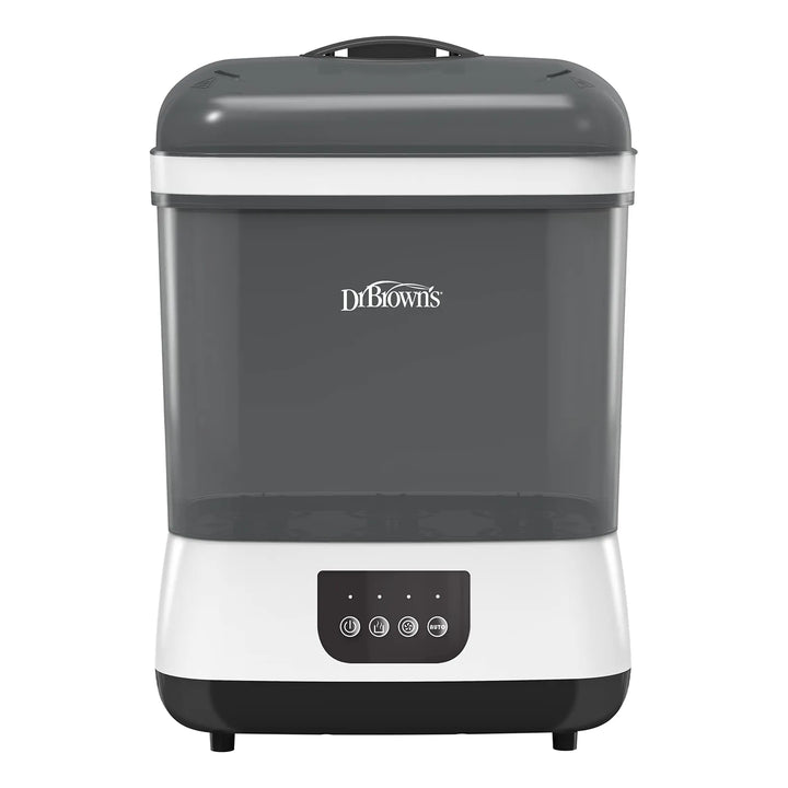 El esterilizador utiliza vapor a alta temperatura para eliminar microorganismos peligrosos. Simplemente coloca los biberones y accesorios en el interior, selecciona el ciclo deseado y deja que la tecnología haga el resto. La secadora integrada acelera el proceso de secado, evitando la humedad que atrae bacterias.
