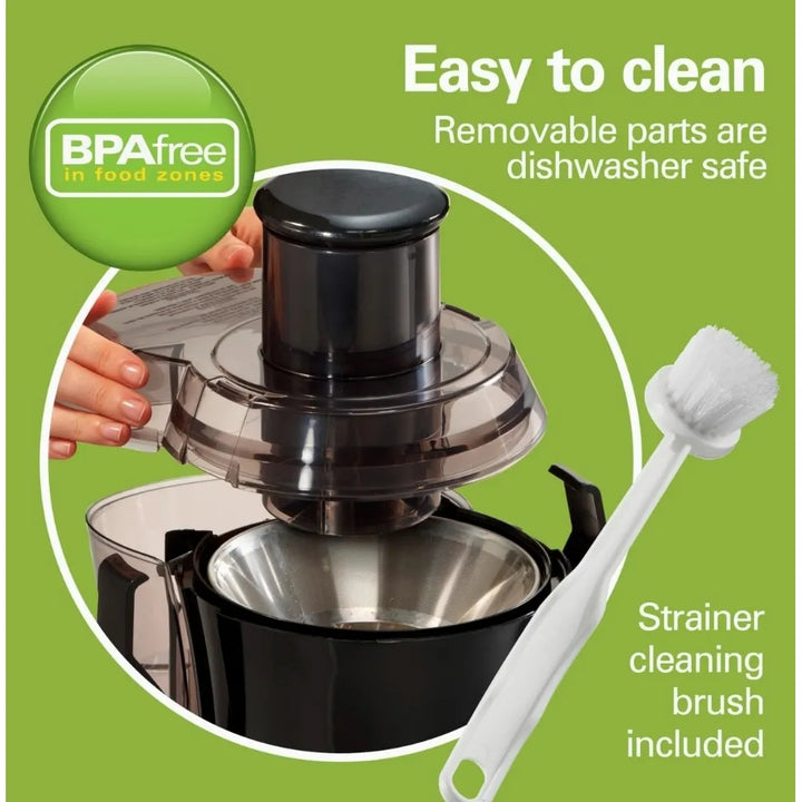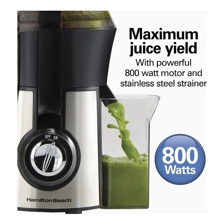 El exprimidor Hamilton Beach utiliza un sistema de prensado eficiente que rompe las fibras de frutas y verduras para extraer su jugo, separando automáticamente la pulpa. Su filtro de malla fina garantiza un líquido suave y sin grumos, mientras que su diseño evita salpicaduras.