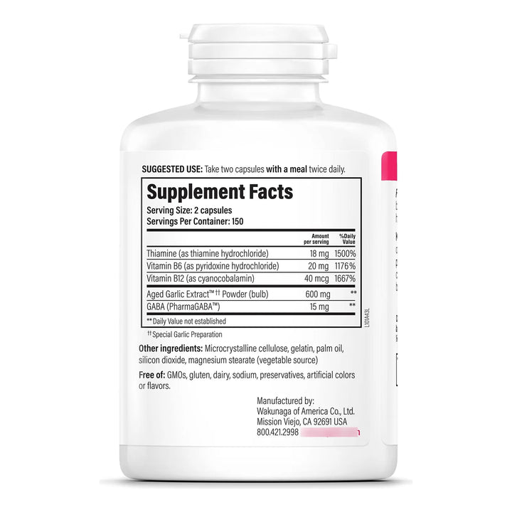 Este poderoso suplemento combina lo mejor de la naturaleza y la ciencia. Con ajo orgánico envejecido hasta por 20 meses, garantiza una absorción óptima y elimina ese molesto olor. Pero eso no es todo, también incluye GABA, vitaminas B1, B6 y B12, nutrientes esenciales que trabajan en sinergia para combatir el estrés, reducir la fatiga y fortalecer tu sistema inmunológico.