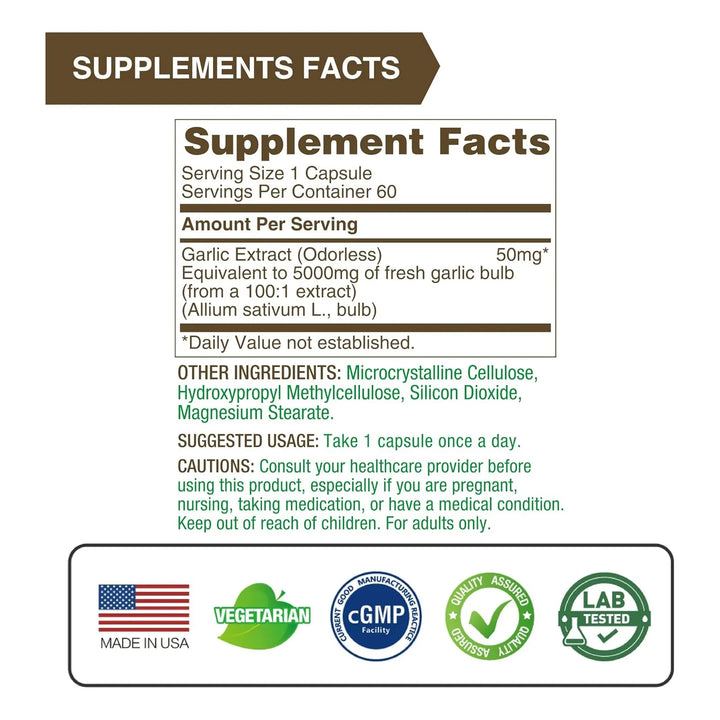 - 💪 Potencia Máxima: Equivalente a 5,000 mg de ajo fresco por cápsula, para resultados que notas.
