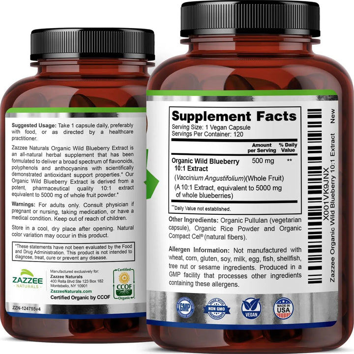 Imagina un producto que no solo cuida de tu salud, sino que también te ofrece la máxima concentración de beneficios en cada cápsula. El Extracto de Arándano Orgánico Zazzee 5000 mg es la solución perfecta para quienes buscan un suplemento natural, potente y confiable. Con su fórmula 10:1, cada cápsula equivale a 10 veces la potencia de un arándano común, brindándote antioxidantes y nutrientes esenciales en cada dosis.