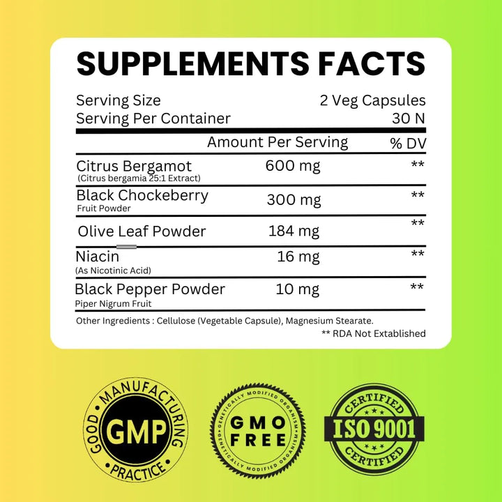 La bergamota cítrica es una joya de la naturaleza, conocida por su perfil único de antioxidantes polifenólicos. Estos compuestos no solo ayudan a mantener tu metabolismo en equilibrio, sino que también protegen tus células del estrés oxidativo. ¿Te preocupa el colesterol? Nuestra fórmula incluye bayas de estrangulamiento negro, niacina, extracto de hoja de olivo y pimienta negra, ingredientes sinérgicos que trabajan juntos para apoyar tu salud desde múltiples ángulos.