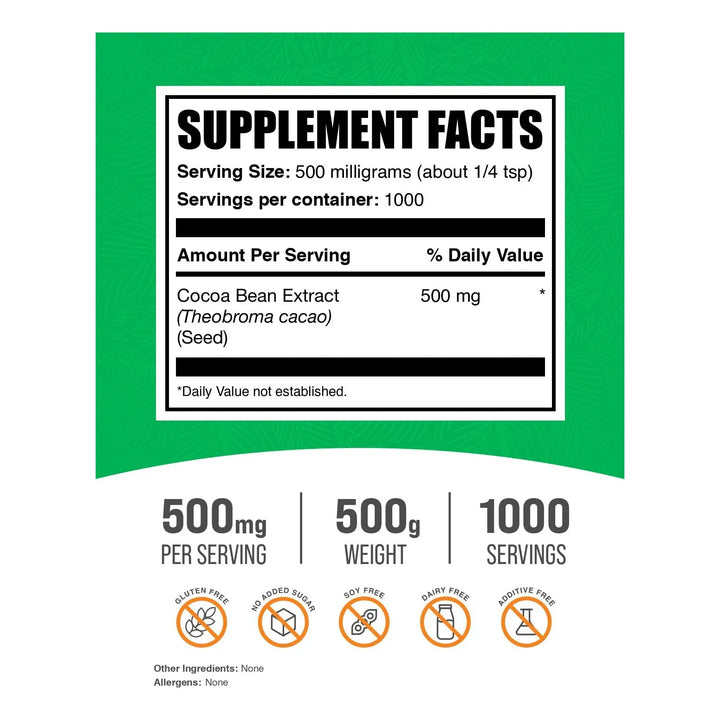 ¿Sabías que el cacao es una de las fuentes más ricas en antioxidantes del planeta? Cada porción de 500 mg de nuestro extracto está cargada de flavonoides, esos poderosos compuestos que combaten el estrés oxidativo y protegen tus células. Pero eso no es todo: la teobromina, un componente natural del cacao, estimula tu sistema nervioso central de manera suave pero efectiva, sin los molestos efectos secundarios de la cafeína.