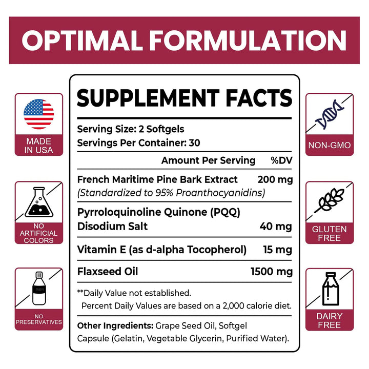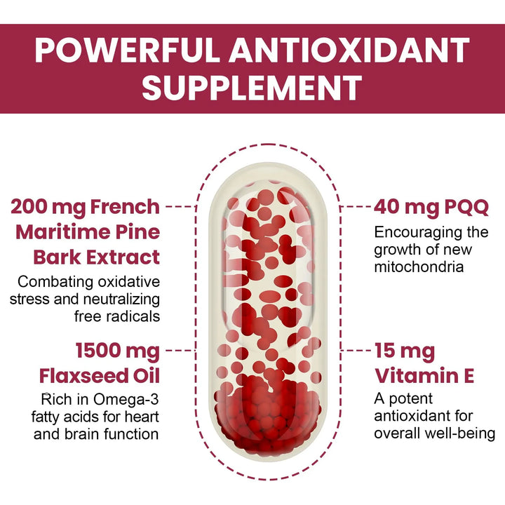El Extracto de Corteza de Pino Marítimo Francés utiliza un sistema de doble entrega que supera las limitaciones de absorción de nutrientes. Las cápsulas blandas liberan los componentes solubles en agua y en aceite de manera secuencial, asegurando que tu cuerpo aproveche cada miligramo. El Pycnogeno actúa neutralizando radicales libres, mientras que el PQQ y el aceite de linaza mejoran la función vascular y la energía celular.
