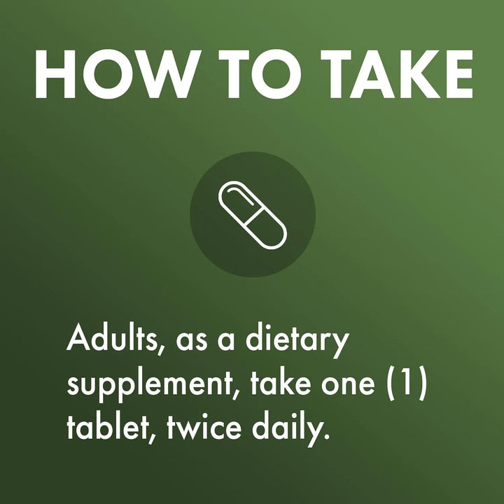 - Toma 2 tabletas al día, preferiblemente con las comidas.
