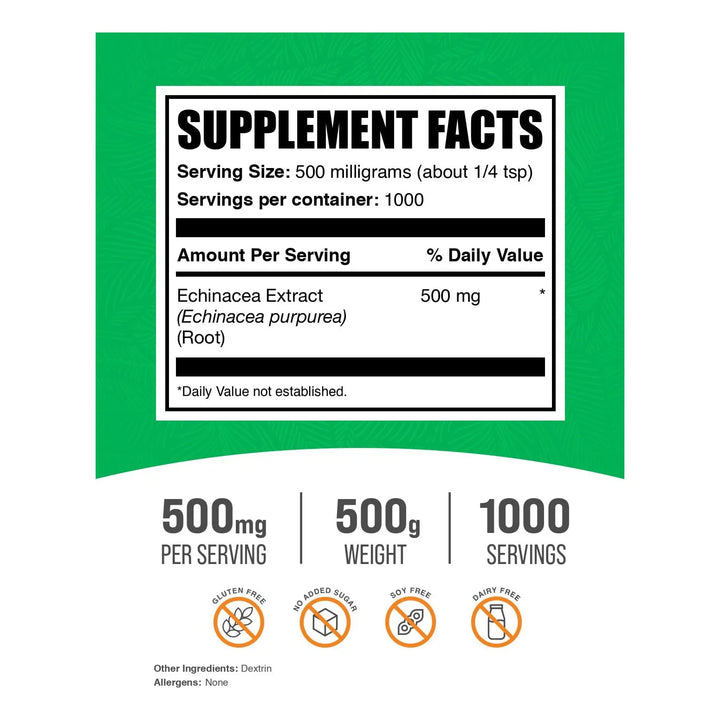 Imagina un suplemento que no solo fortalece tu sistema inmunológico, sino que también se adapta a tu estilo de vida sin complicaciones. Nuestro extracto de equinácea en polvo es la solución perfecta para quienes buscan un apoyo inmunológico natural, vegano y sin gluten. Cada porción de 500 mg está diseñada para brindarte los nutrientes esenciales que tu cuerpo necesita para mantenerse fuerte y saludable.