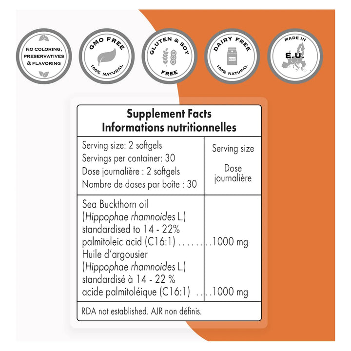 Este poderoso extracto, extraído de la pulpa y semillas del espino cerval de mar, está enriquecido con ácido palmitoleico, un ácido graso esencial que tu cuerpo ama. Su fórmula única aumenta la biodisponibilidad del aceite, asegurando que cada cápsula entregue los máximos beneficios. ¿Qué significa esto para ti? Protección contra agentes externos como la luz y el oxígeno, garantizando que cada dosis sea tan efectiva como la primera. 💪
