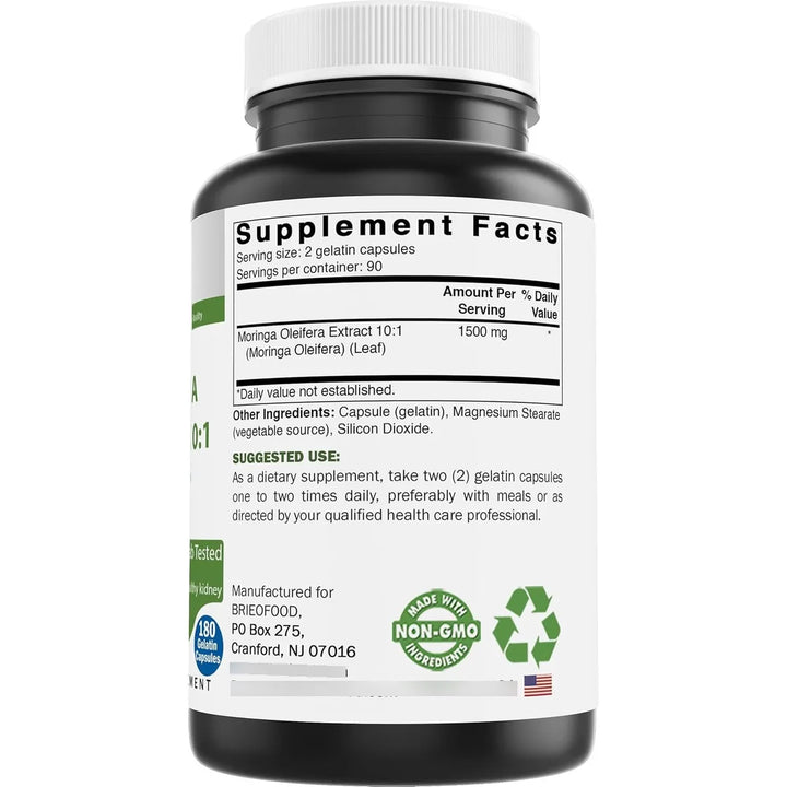 Vivir una vida saludable no tiene que ser complicado. Con Brieofood Extracto de Moringa Oleifera, obtienes 1500 mg de pura vitalidad en cada porción. Libre de OMG, gluten y aditivos artificiales, este suplemento es tu aliado perfecto para mantenerte activo, fortalecer tu sistema inmunológico y llenarte de energía natural. ¡Tu cuerpo te lo agradecerá!