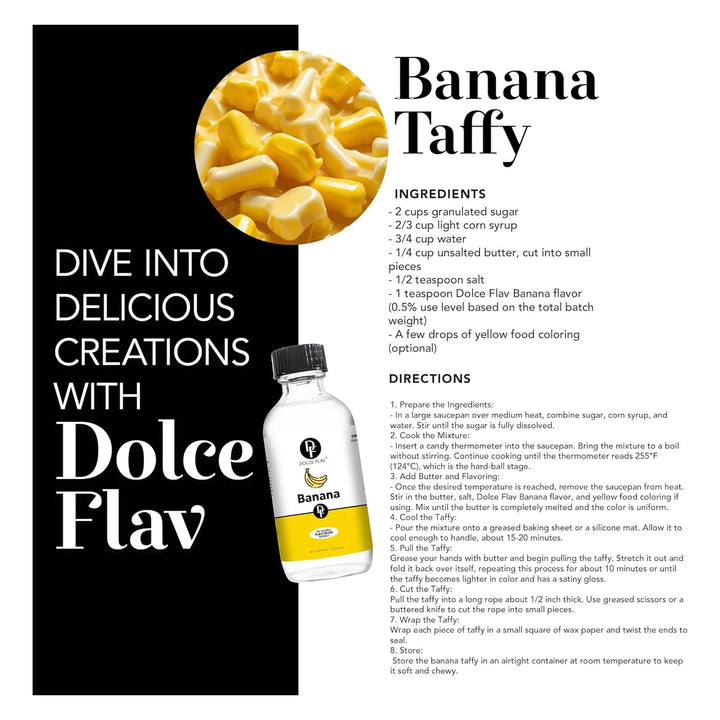 Nuestro extracto de plátano está diseñado para integrarse fácilmente en tus recetas, liberando un sabor auténtico y consistente. Su fórmula soluble en aceite permite una mezcla homogénea, asegurando que cada porción de tu creación tenga el mismo delicioso sabor a plátano.