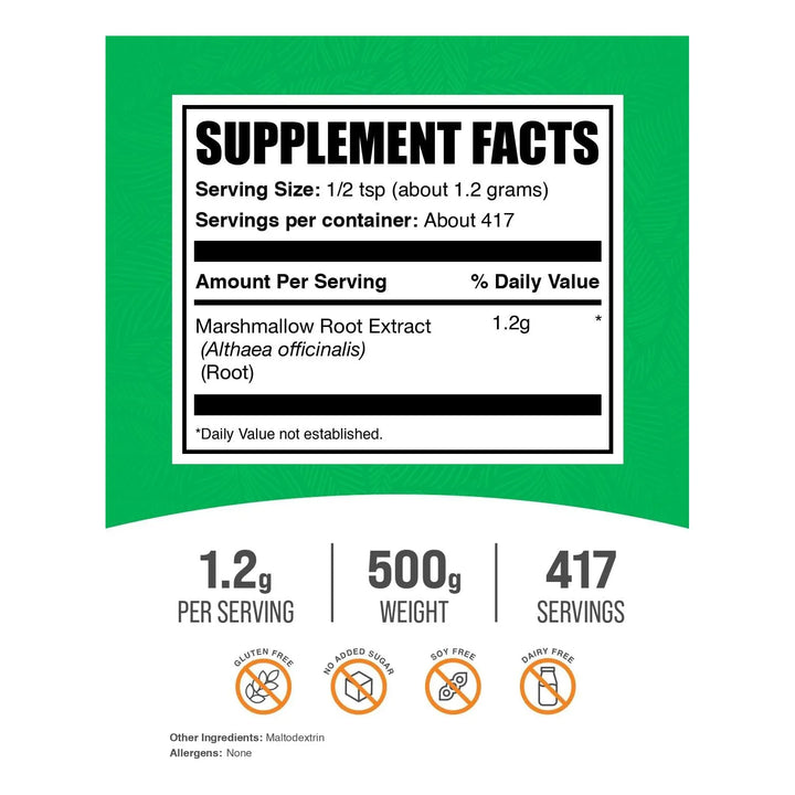 ¿Buscas una forma sencilla y efectiva de mejorar tu bienestar diario? Nuestro Polvo de Extracto de Raíz de Malvavisco es la solución que estabas esperando. Con 1200 mg por porción, este suplemento herbal te brinda los nutrientes esenciales que tu cuerpo necesita para florecer. 🌿