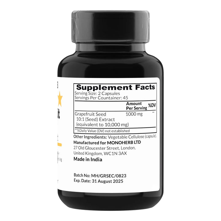 El extracto de semilla de pomelo es conocido por sus propiedades antioxidantes y de apoyo al sistema inmunológico. Su concentración 10X asegura que cada cápsula entregue una dosis potente y efectiva, ayudando a tu cuerpo a mantenerse fuerte y saludable. Al ser 100% puro, tu organismo absorbe rápidamente sus beneficios sin ingredientes artificiales.