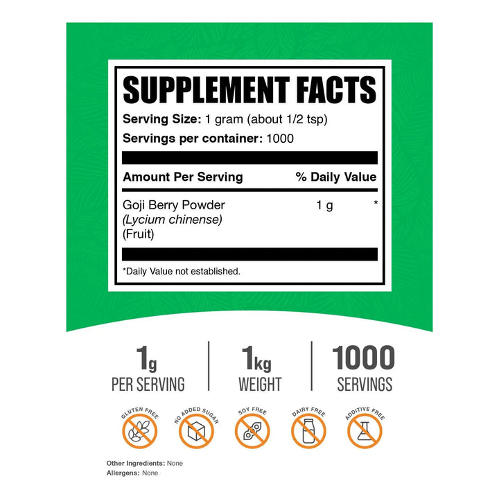 - Extracto Puro de Bayas de Goji: 1000 mg por porción para una dosis concentrada de nutrientes 🌟