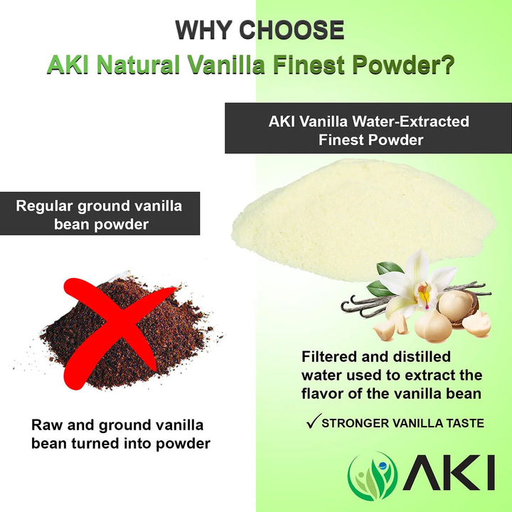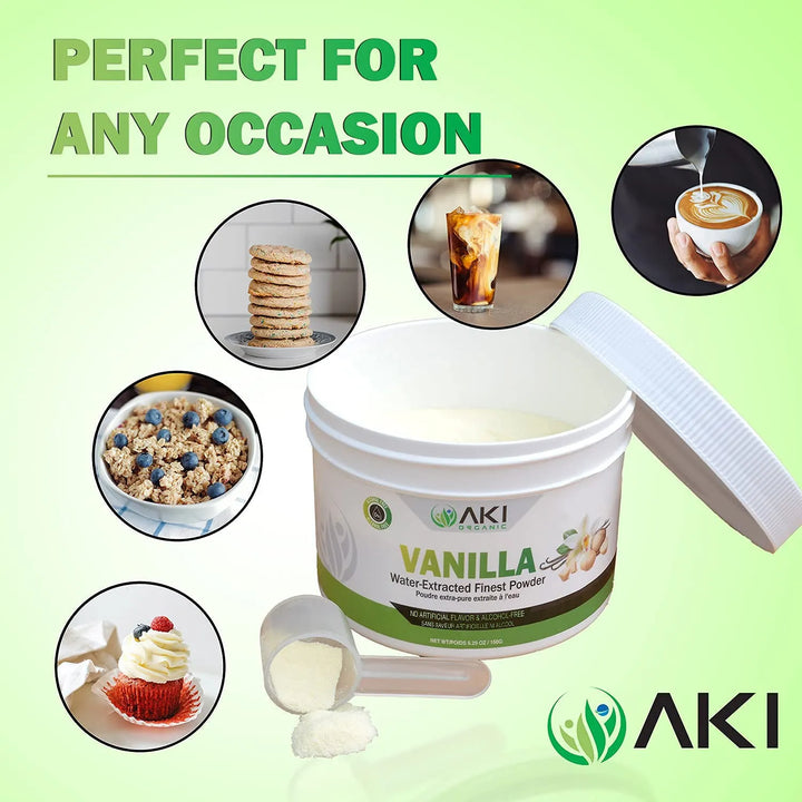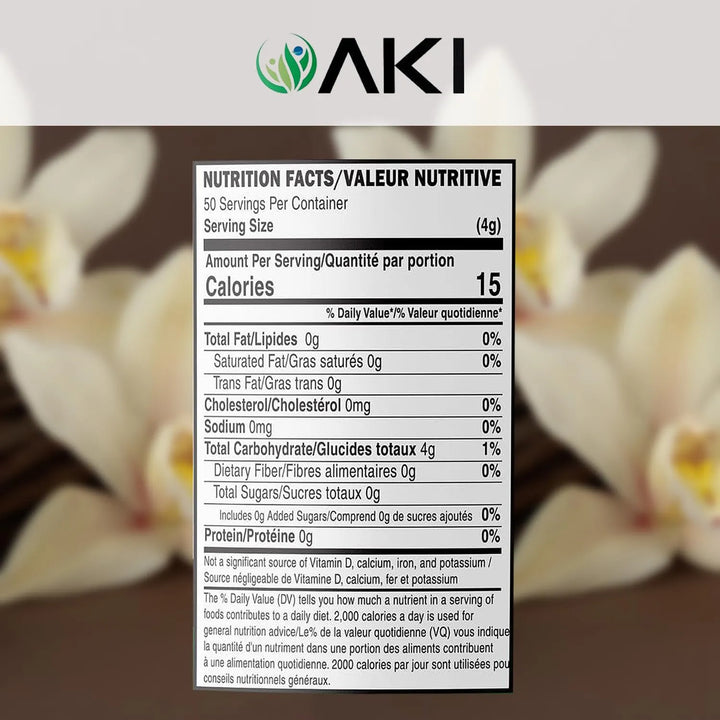 ¿Cansado de sabores artificiales que arruinan el sabor de tus postres? Nuestro polvo de vainilla AKI está hecho con frijoles auténticos, sin OMG, y endulzado naturalmente con Luo Han Guo para un toque dulce sin culpas. Ideal para hornear, cocinar o añadir a tus batidos, cada cucharada es una explosión de sabor que eleva cualquier creación culinaria.