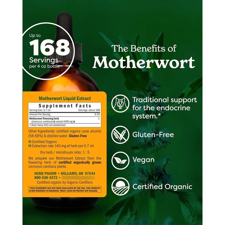 ¿Buscas una solución orgánica y efectiva para equilibrar tu sistema endocrino? El Extracto Líquido Orgánico de Motherwort de Herb Pharm está diseñado para ofrecerte un apoyo natural, con ingredientes certificados y una fórmula de rápida absorción. Este producto no solo te brinda beneficios para tu salud, sino que también es libre de gluten y OMG, garantizando pureza en cada gota.
