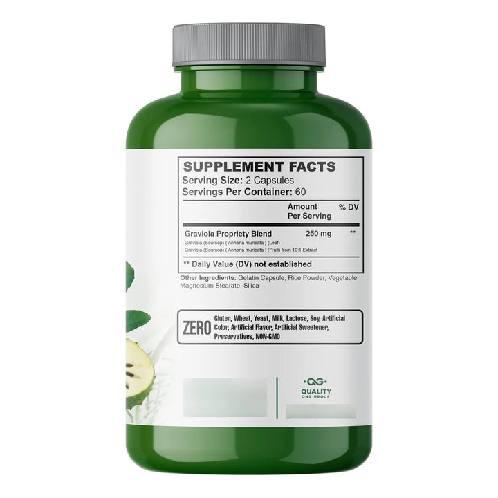 - 🌿 Refuerzo Inmunológico Potente: Protege tu cuerpo contra agentes externos con 2500 mg de extracto puro de graviola.