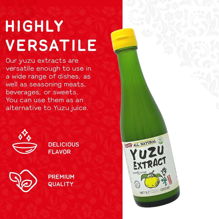 ¿Cansado de sabores artificiales que arruinan tus platos? Este extracto está hecho con 100% jugo de yuzu, sin colorantes, conservantes ni fragancias añadidas. Su perfil agrio y cítrico transforma postres, cócteles, salsas y hasta marinados, añadiendo un toque de elegancia que impresionará a tus invitados. ¿Y lo mejor? Es increíblemente versátil: desde darle un giro a tus bebidas hasta realzar el sabor de tus platillos coreanos favoritos.