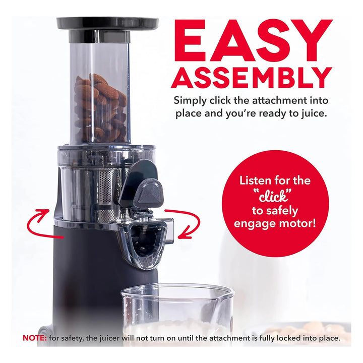 ¿Cansado de perder tiempo y dinero en jugos procesados llenos de conservantes? Este exprimidor compacto y elegante no solo ahorra espacio en tu cocina, sino que también te permite crear jugos, sorbetes y hasta leches vegetales en casa, con ingredientes 100% naturales. Su motor silencioso de 130W trabaja sin esfuerzo, mientras tú disfrutas de sabores intensos y texturas suaves, libres de pulpa no deseada.