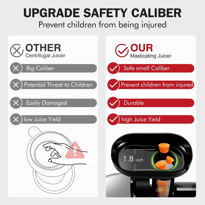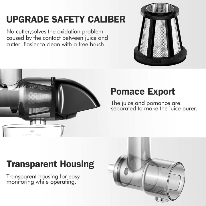 - 💪 Nutrición máxima: Extrae hasta un 30% más de jugo que los extractores convencionales, sin calor que dañe los nutrientes.