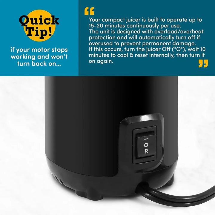 - Recoge el jugo fresco en un vaso y disfruta al instante.