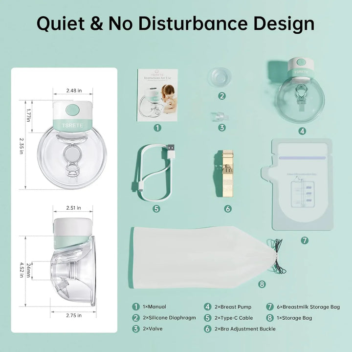 El kit incluye todo lo que necesitas: 2 extractores, bolsas de almacenamiento, cables USB tipo C y accesorios de repuesto. Compatible con la mayoría de los tamaños de senos, es la solución perfecta para una lactancia sin complicaciones. ¿Lista para simplificar tu rutina? Este extractor no solo ahorra tiempo, sino que también te empodera para disfrutar de cada momento con tu bebé.