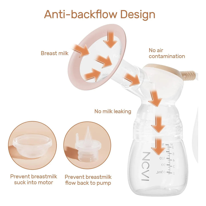 El sistema antireflujo asegura que tu leche no dañe el dispositivo, manteniendo todo higiénico y seguro. Con materiales de grado hospitalario y libre de BPA, cada componente está diseñado para tu tranquilidad y la salud de tu bebé.