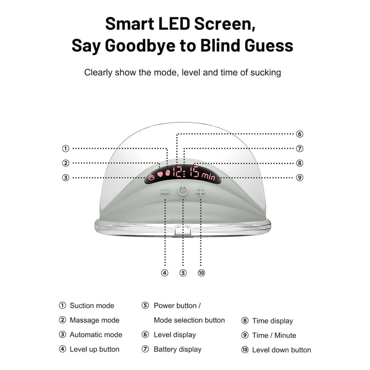 El extractor Mumgaroo se oculta perfectamente bajo tu ropa, dándote la privacidad que mereces. Ya no tendrás que preocuparte por interrupciones o miradas indiscretas. Además, su pantalla LED te muestra toda la información que necesitas: tiempo de bombeo, modo, nivel de intensidad y estado de la batería. ¡Adiós a las adivinanzas!