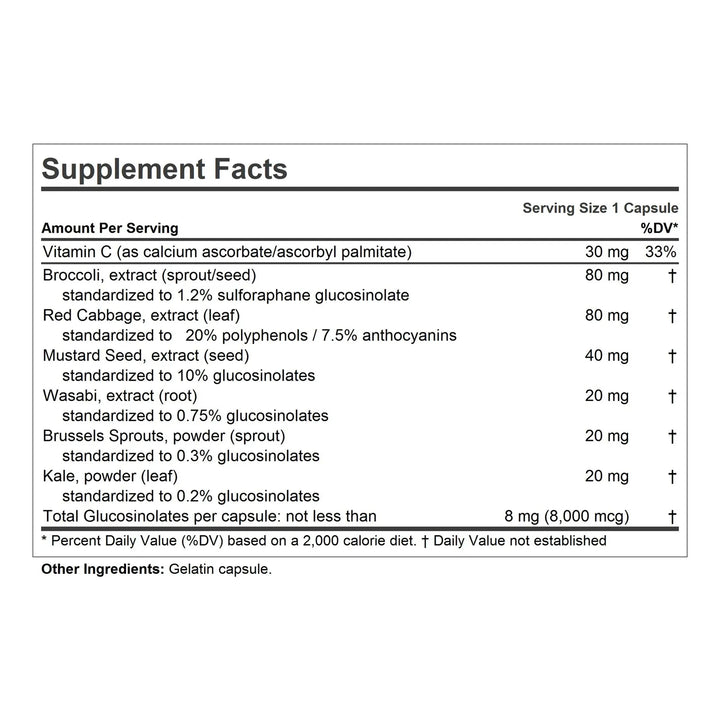 Imagina tener acceso a los nutrientes de varias porciones de verduras crucíferas en una sola cápsula fácil de tragar. Sin aditivos, sin rellenos, solo ingredientes bioactivos puros que tu cuerpo absorberá rápidamente. Ideal para personas con estilos de vida ocupados que no quieren comprometer su salud.