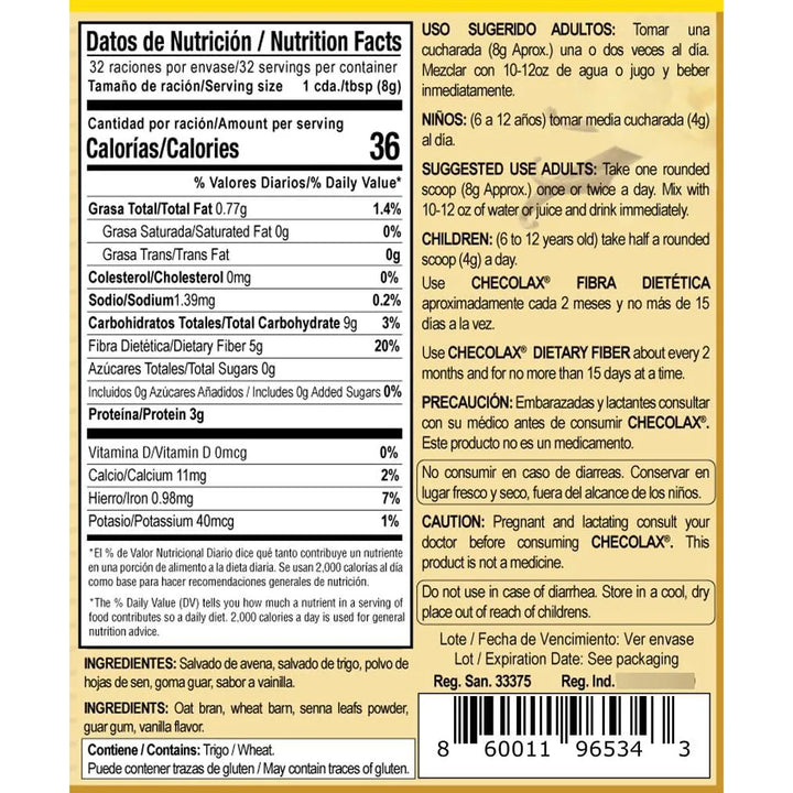 La fibra actúa como una escoba en tu tracto digestivo: absorbe agua, aumenta el volumen de las heces y estimula los músculos intestinales para mover los desechos suavemente. Los probióticos incluidos alimentan las bacterias buenas de tu intestino, creando un ambiente saludable que reduce la inflamación y mejora la absorción de nutrientes.
