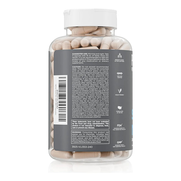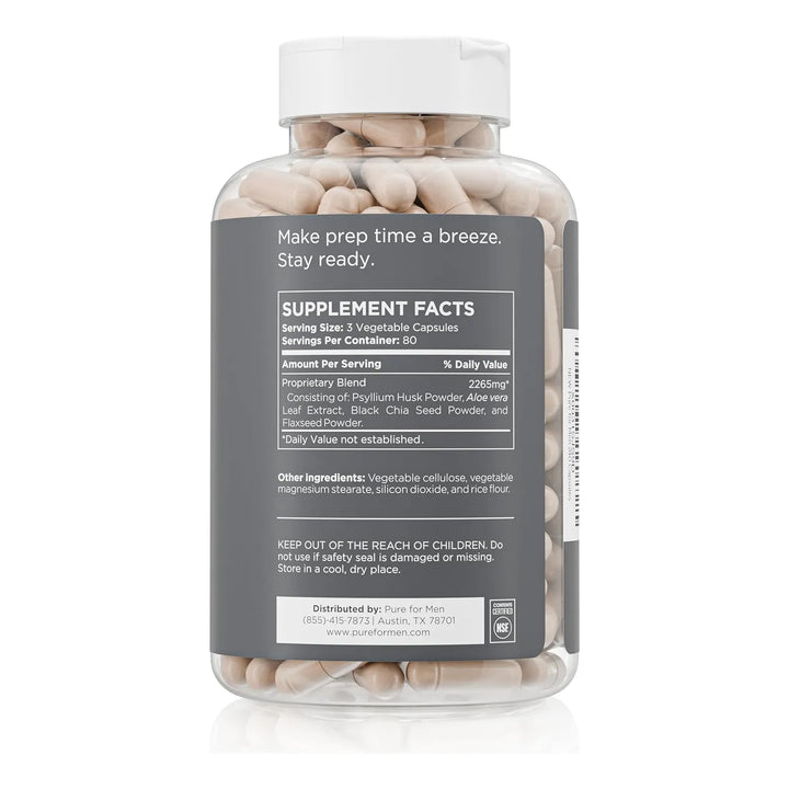 La Fibra Para Hombres Original actúa desde la primera dosis. Al tomar las cápsulas con agua, la cáscara de psyllium se expande, formando un gel que recorre tu sistema digestivo, ayudando a eliminar toxinas y promoviendo la regularidad. Los demás ingredientes, como el aloe vera, calman el tracto digestivo, mientras que las semillas de chía y lino aportan fibra adicional y nutrientes esenciales.