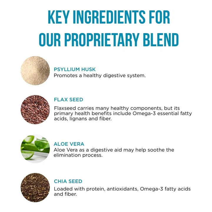 Este poderoso suplemento no es solo otra fibra más. Es una mezcla exclusiva de ingredientes naturales como cáscara de psyllium, semillas de chía, linaza y aloe vera, trabajando juntos para apoyar tu digestión y ayudarte a sentirte mejor cada día. La ciencia detrás de estos ingredientes ha sido probada por generaciones, y ahora está disponible para ti en una fórmula conveniente y fácil de usar.
