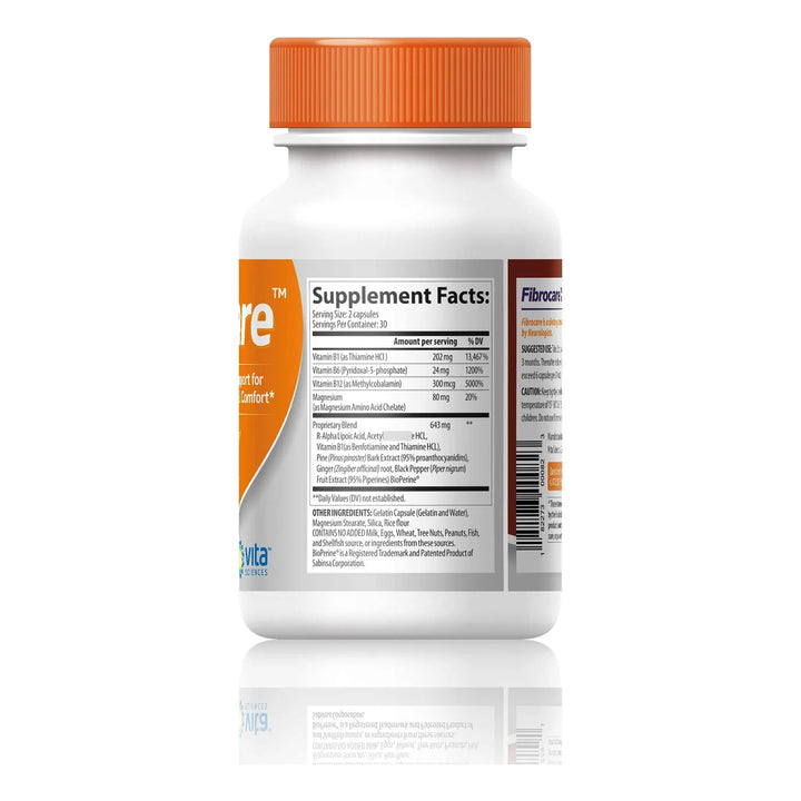 FibroCare actúa directamente sobre las células nerviosas, proporcionando los nutrientes necesarios para su reparación y funcionamiento óptimo. El R-ALA natural penetra en las células, neutralizando los radicales libres y reduciendo la inflamación. La Acetil L-Carnitina y la Benfotiamina trabajan juntas para mejorar la conducción nerviosa y reducir las molestias.