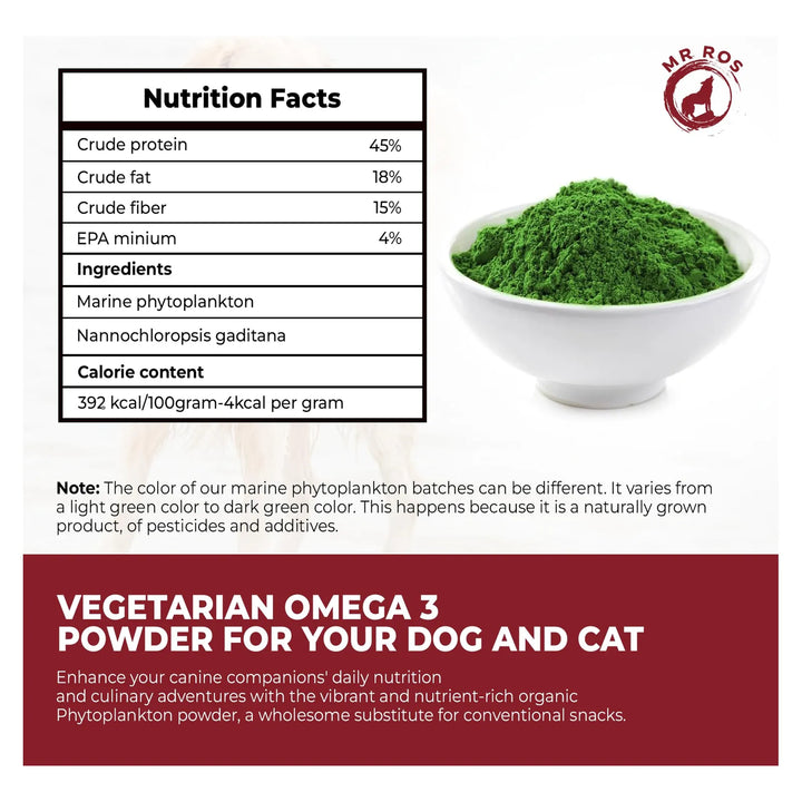 - 🌟 Pelaje Radiante: Olvídate de los suplementos artificiales. Nuestro fitoplancton devuelve el brillo natural y la suavidad al pelaje de tu mascota.