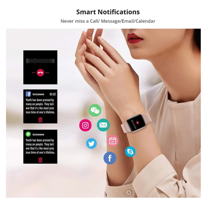 Este reloj inteligente está diseñado para quienes buscan equilibrar su bienestar con un estilo de vida activo. Con su pantalla táctil a color de 1.3 pulgadas y resistencia al agua IP68, podrás usarlo en cualquier situación, desde la oficina hasta la piscina. ¿Te preocupa perderte una llamada importante? Con las notificaciones inteligentes, nunca más pasarás por alto un mensaje o una cita.