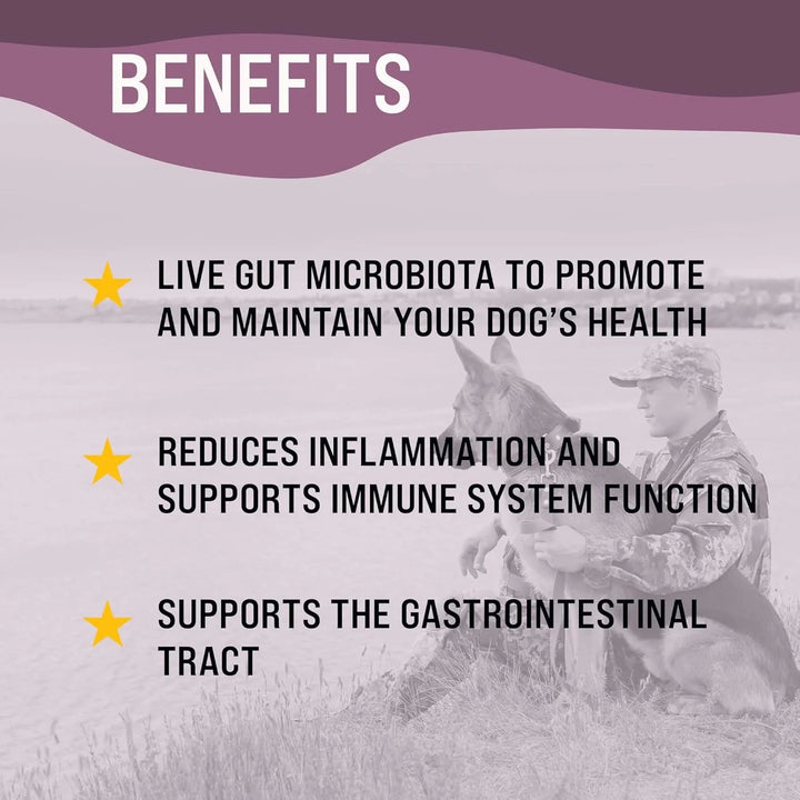 Los probióticos en FloraPup colonizan el intestino de tu perro, desplazando bacterias dañinas y promoviendo una microbiota saludable. Esto reduce la inflamación, mejora la absorción de nutrientes y fortalece las defensas naturales.