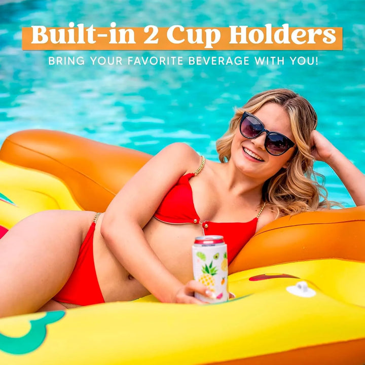 ¿Cansado de flotadores incómodos que se desinflan fácilmente? Nuestro producto está fabricado con materiales de alta calidad, resistentes a rasgaduras y decoloración por el sol. Con capacidad para soportar hasta 220 libras, garantiza seguridad y durabilidad. Además, su diseño realista y portavasos incluidos hacen que cada momento en el agua sea inolvidable.