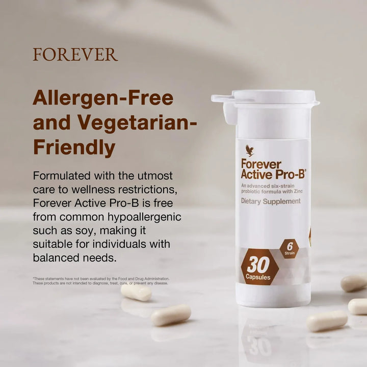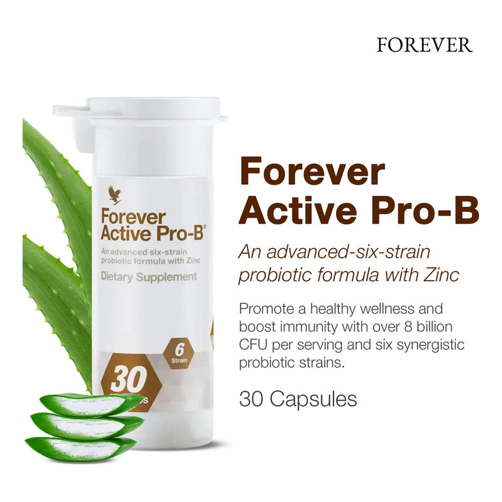 Imagina despertar cada mañana con energía, sintiéndote ligero y libre de esas molestias que te acompañan día tras día. Forever Active Pro-B no es solo otro probiótico, es tu aliado para una salud intestinal óptima. Con 8 mil millones de UFC y 6 cepas sinérgicas, este probiótico avanzado trabaja desde la primera cápsula para restablecer el equilibrio de tu microbiota, ayudándote a recuperar la armonía que tu cuerpo necesita.