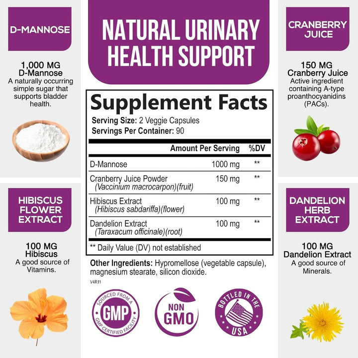 - 🌿 Soporte 4 en 1: Combina D-manosa, arándano, hibisco y diente de león para un alivio potente y natural.