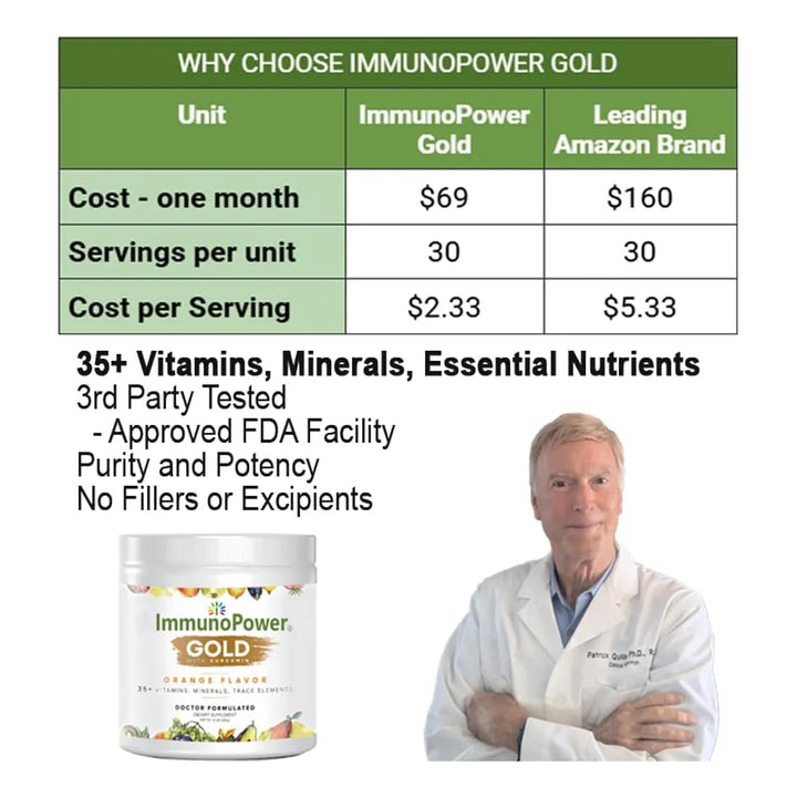 Imagina despertar cada día con más energía, sintiéndote protegido y listo para enfrentar cualquier desafío. Nuestra fórmula en polvo de 284 gramos no solo es conveniente, sino que está diseñada para potenciar tu sistema inmunológico de manera natural. Con más de 35 vitaminas y minerales, incluyendo curcumina de cúrcuma con BioPerine, este producto es tu aliado para una vida más saludable y activa.
