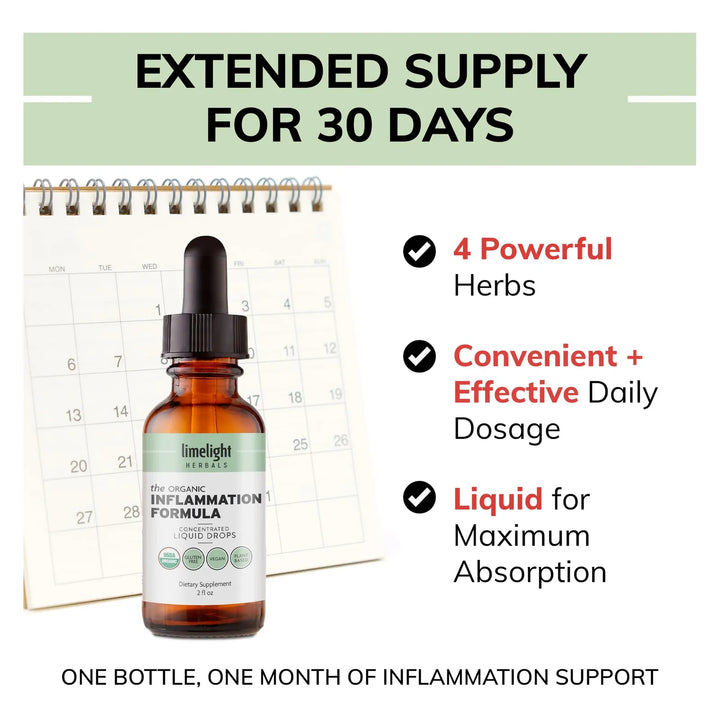 Este suplemento líquido, certificado por USDA, combina los mejores extractos herbales para modular tu respuesta inflamatoria. Con una absorción de hasta el 98%, gracias a la inclusión de pimienta negra, cada gota trabaja rápidamente en tu cuerpo. ¿Lo mejor? Es vegano, sin OMG y libre de gluten, ideal para quienes buscan un estilo de vida saludable y consciente.
