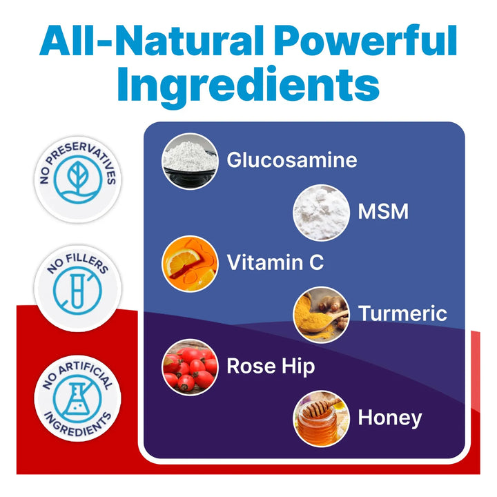 - 🚀 Alivio rápido y efectivo del dolor articular: Ingredientes como glucosamina y MSM actúan directamente en las articulaciones, reduciendo la inflamación y el malestar.