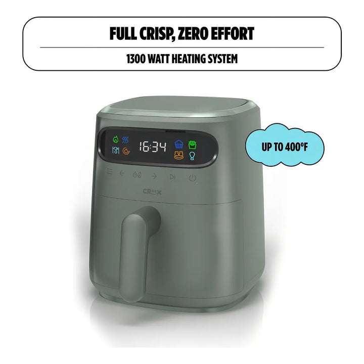 Imagina disfrutar de tus alimentos favoritos crujientes y dorados, sin culpa y sin el exceso de grasa de las frituras tradicionales. La freidora de aire digital de 3.0 cuartos con tecnología TurboCrisp hace esto posible. Olvídate de los aceites pegajosos y los olores persistentes en tu cocina. Con solo presionar un botón, transformarás ingredientes simples en platillos irresistibles, conservando su sabor y textura, pero con hasta un 85% menos de grasa. ¿No es hora de darle un giro saludable a tus comidas?