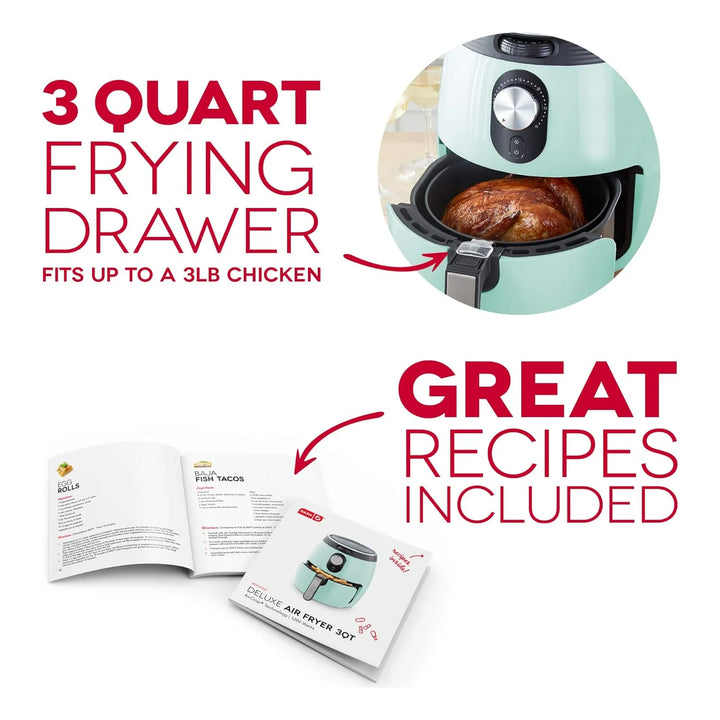 Esta maravilla de 1200 vatios y capacidad de 3 cuartos de galón es ideal para familias ocupadas o quienes aman recibir invitados. Su diseño compacto se adapta a cualquier cocina, mientras su cesta antiadherente hace que la limpieza sea pan comido.